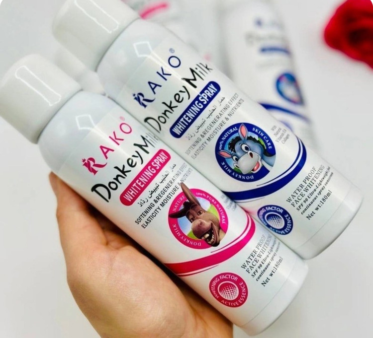 اسپری سفید کننده حاوی ضد آفتاب شیر الاغ راکو RAKO کد RK 1159 حاوی عصاره شیر الاغ یک کرم ضد آفتاب بسیار خوب با SPF 90 است که علاوه بر خاصیت ضد آفتاب و ضد اشعه UV فوق العاده دارای خواص ویژه دیگری نیز هست. مهم ترین ویژگی این اسپری سفید کنندگی آن است که می تواند پوست شما را پس از استفاده تا حد زیادی سفید و روشن کند. علاوه بر آن این کرم به علت داشتن مواد آبرسان و مرطوب کننده فوق العاده پوست شمار ه نرم و مرطوب نگه می دارد. این کرم ضد آفتاب و مرطوب کننده باعث کاهش چین و چروک و خطوط ریز پوست می شود و از ظهور علائم پیری زودرس جلوگیری می کند.